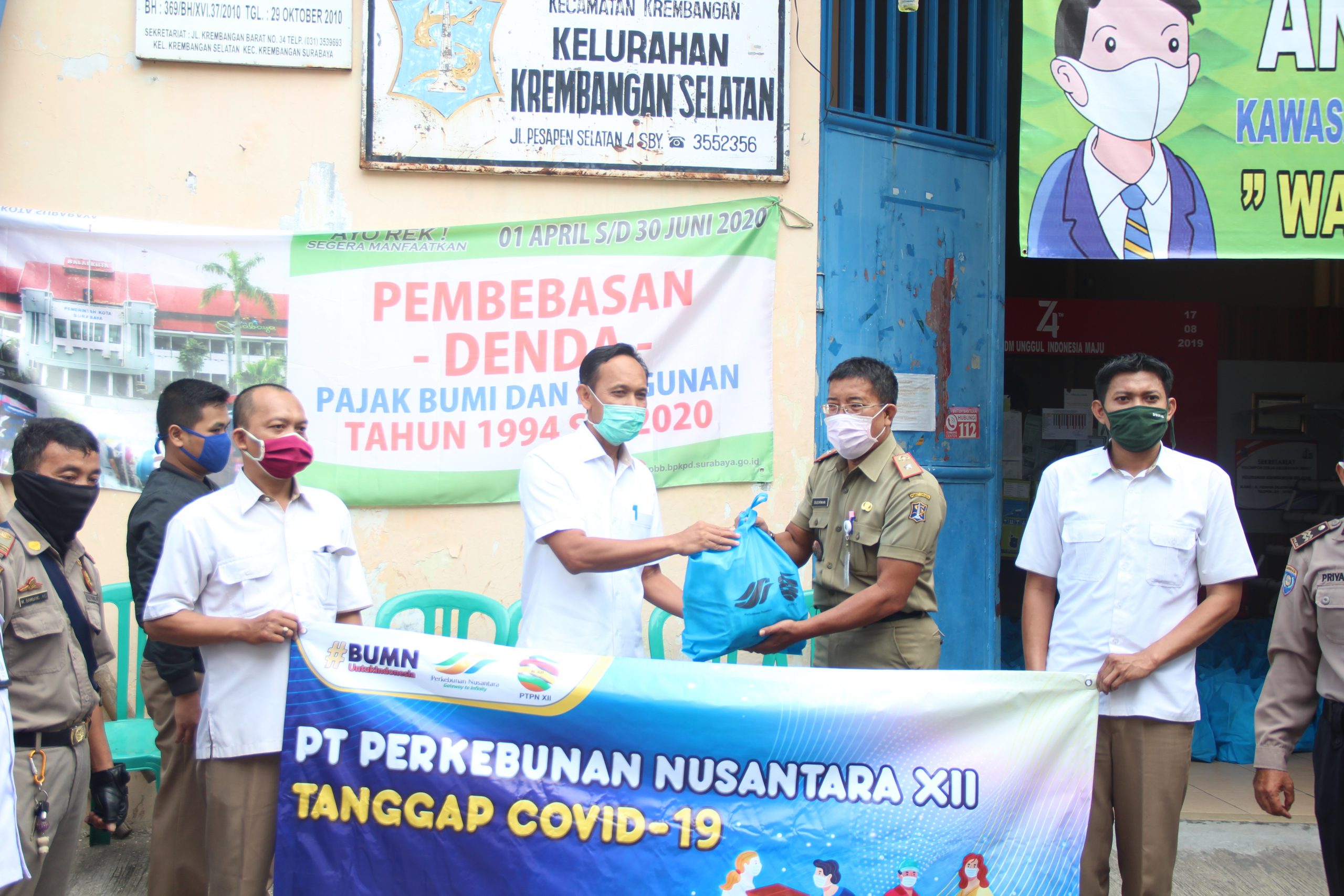 Pada hari ini (11/5) Direktur Utama PTPN XII, M. Cholidi, bersama sejumlah karyawan Kantor Direksi PTPN XII menggelar bhakti sosial bertajuk “PT Perkebunan Nusantara XII Peduli Covid-19” di Kelurahan Krembangan Selatan dan depan Kantor Direksi PTPN XII, Jalan Rajawali No. 44 Surabaya.